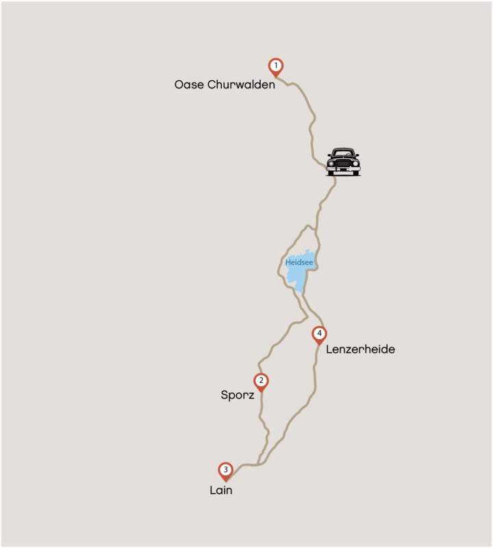 Die Tour führte von der Oase Churwalden Richtung Valbella bis hinauf nach Storz und Lain. Entlang dem malerischen Heidsee fuhr die Gruppe wieder zurück zur Oase Churwalden, wo bereits Kaffee und Kuchen auf sie warteten.
