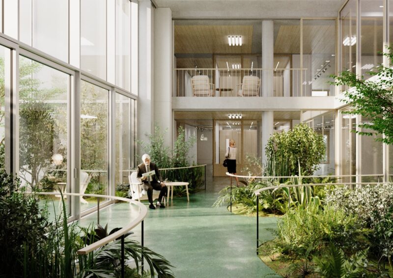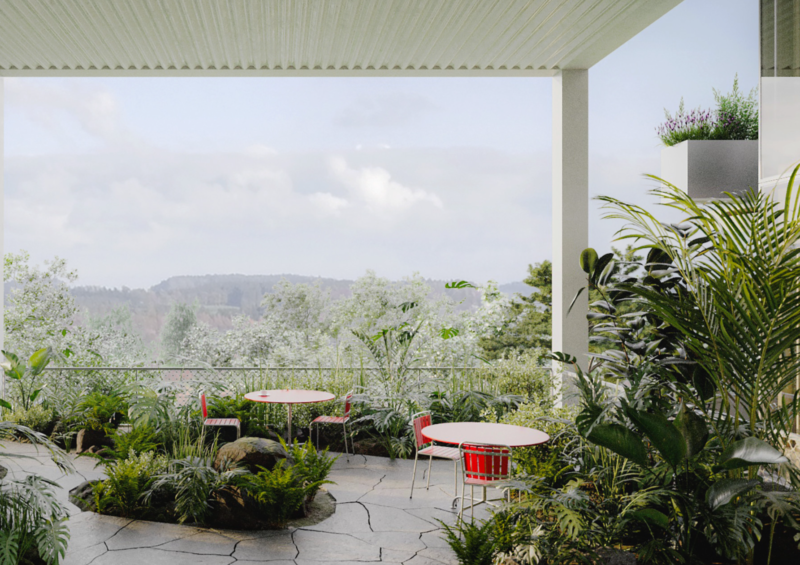 Das Hochhaus ist nicht einfach von einem Park umgeben – es wird selbst Teil des Parks. Für die Bewohnenden bedeutet das: Natur pur – auch im Alltag. Die geschützten Demenzgärten in den unteren Etagen bieten Ruhe und Sicherheit, während der öffentliche Park Raum für Begegnungen schafft. Ob ein Spaziergang, ein Nachmittagskaffee im angrenzenden Restaurant oder eine Aktivität im «Freiruum» – der Park wird zu einem lebendigen Treffpunkt für alle.